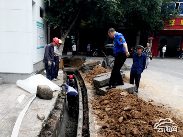 云陽網訊(通訊員 方劍)近日,龍洞鎮組織污水管網整治工人加快施工進度,深挖溝槽,鋪設塑料薄膜墊層,新接污水管道,位于大麥沱社區農村商業銀行的下水道迅速開挖,水管、磚頭等建材接連進場,污水管網整治快速有序推進。