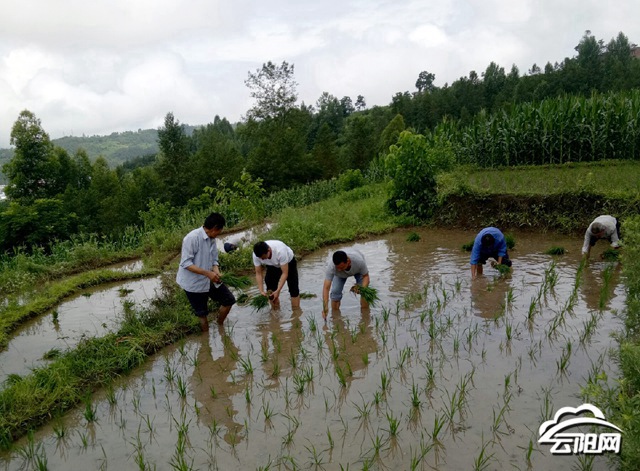 云陽網(wǎng)訊(通訊員 伍柏樹)近日,在南溪鎮(zhèn)平安村農(nóng)戶魏正清家的田里,來自縣發(fā)展改革委的駐村工作隊(duì)員卷起褲腿,手拿秧苗,動作嫻熟地插秧栽種。