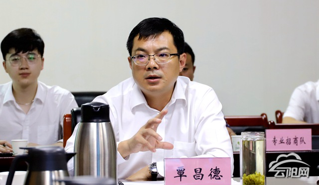 云陽網訊(記者 朱學徽 王月園)6月22日,縣委副書記、縣長覃昌德出席招商引資洽談會,就環保新材料暨光電科技產業園項目與客商開展招商洽談。
