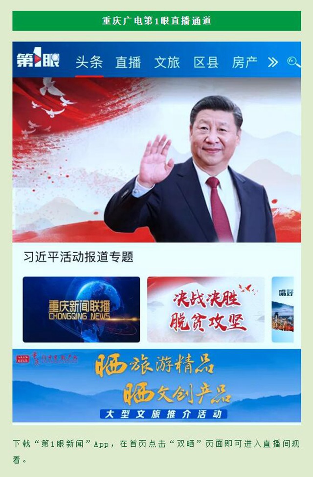 下載“新重慶”App,進入“專題”板塊,點擊“雙曬”頁面即可觀看直播。