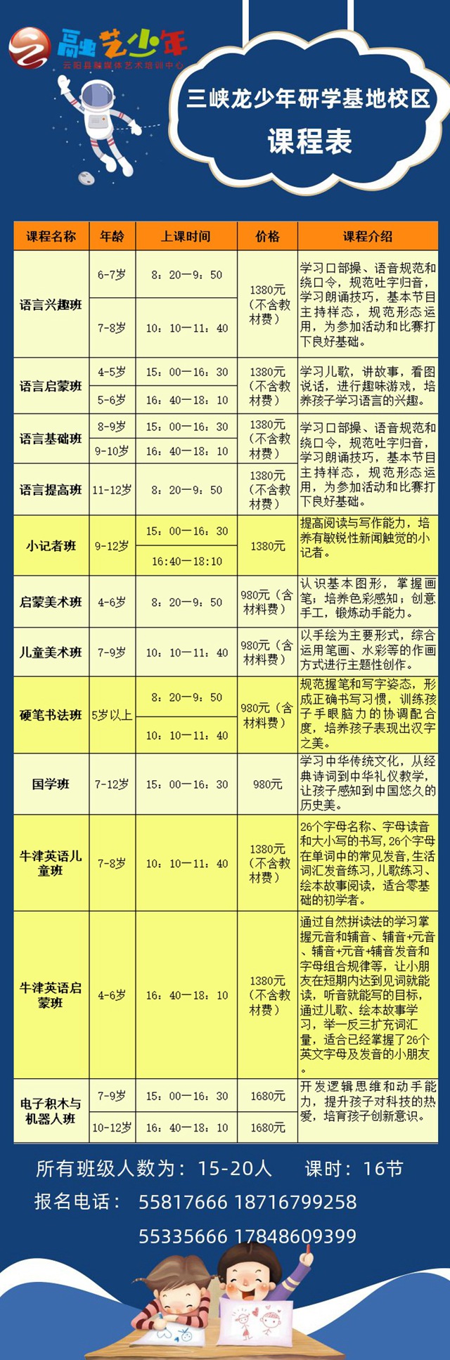 凡云陽援鄂醫(yī)務人員子女報暑期班,可享受一科全額免費,報多科同樣享受以下優(yōu)惠。