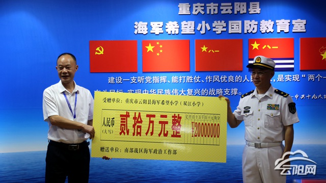 云陽網(wǎng)訊(記者 陳愛玲 劉太興)6月23日,南部戰(zhàn)區(qū)海軍政治工作部副主任朱明哲一行帶著對云陽人民的深厚情誼,到海軍希望小學(xué)(雙江小學(xué))走訪慰問,現(xiàn)場捐贈慰問金20萬元。
