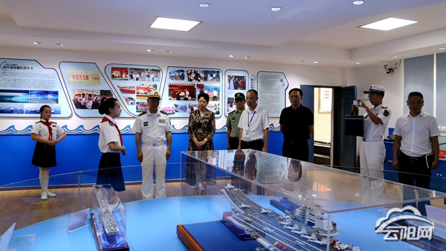 朱明哲一行參觀了學(xué)校海軍文化廣場、國防教育室等地,看學(xué)校建設(shè)、看援助項(xiàng)目情況,詳細(xì)了解學(xué)校發(fā)展歷史、教育教學(xué)、校園文化建設(shè)、國防教育史、特色文化打造等情況。
