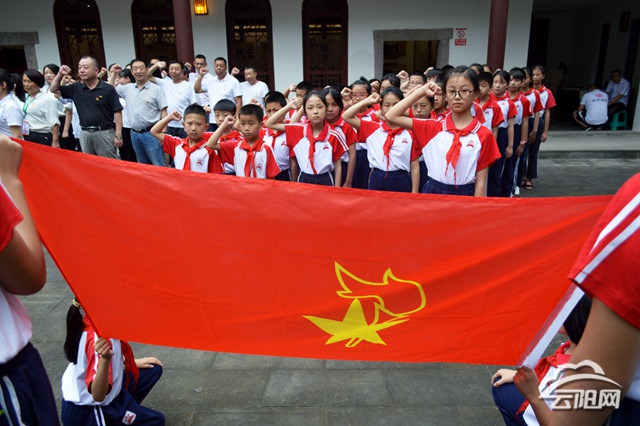 活動在彭詠梧烈士紀念館舉行,21名學校教師黨員和53名少先隊員代表參加。通過黨旗帶領隊旗,銘記先烈遺志,分別重溫了入黨誓詞、入隊誓詞,從而推動革命傳統薪火相傳、革命精神代代以繼。宣誓儀式之前,先進黨務工作者、優秀教師代表向彭詠梧烈士塑像敬獻了花籃,表達崇敬之情、寄托哀思之意。