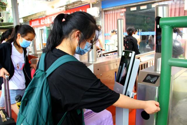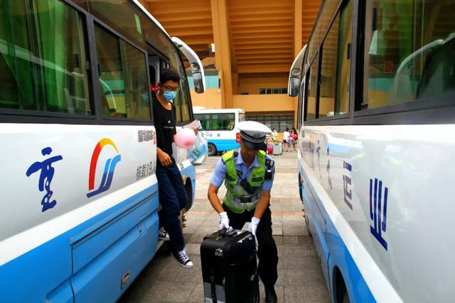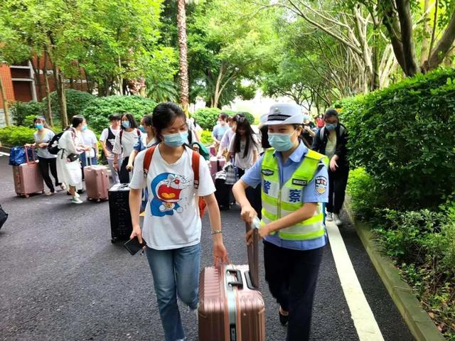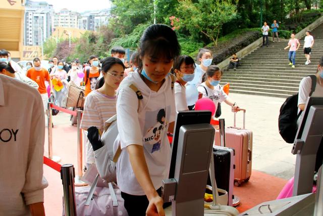在雙江中學(xué),來自江口中學(xué)的考生正陸續(xù)接受體溫檢測,有序進入考點臨時住宿點。
