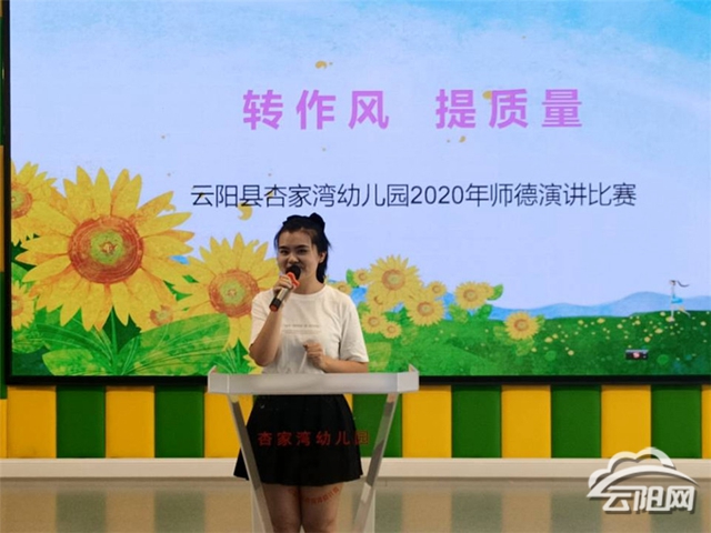 云陽網(wǎng)訊(通訊員 冉鑫云)為全面提升教職工的思想政治素質(zhì)和職業(yè)道德水平,踐行社會(huì)主義核心價(jià)值觀,爭做“四有”好老師,7月14日,杏家灣幼兒園舉行了以“轉(zhuǎn)作風(fēng) 提質(zhì)量”為主題的師德演講比賽。