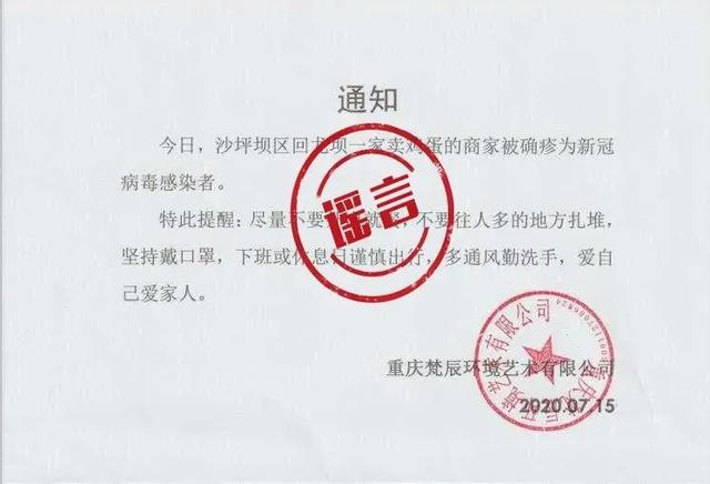 謠言:沙坪壩區回龍壩一家賣雞蛋的商家被確診新冠肺炎