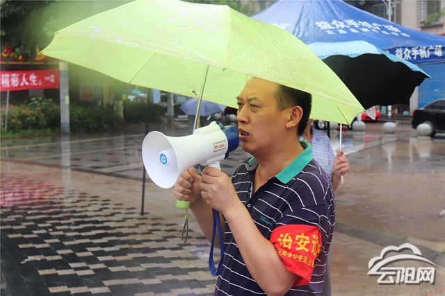 在江口鎮(zhèn)濱河廣場(chǎng),為應(yīng)對(duì)降雨帶來(lái)的水位急漲,社區(qū)組織黨員干部在廣場(chǎng)拉上警戒線,堅(jiān)持在一線巡邏,排查隱患,確保群眾生命財(cái)產(chǎn)安全。