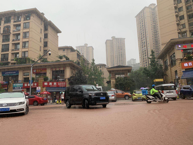 云陽網(wǎng)訊(記者 陳小婭)截至今天下午6:00,云陽城區(qū)強(qiáng)降雨仍在持續(xù),多條城區(qū)主次干道積澇嚴(yán)重。記者在金科世界城1號(hào)門看到,口福街主路積水嚴(yán)重,市民過馬路需淌水而行,目測(cè)積水最深處大約二至三十厘米。目前,縣城管部門正全力開展巡查和排澇工作。提請(qǐng)市民密切關(guān)注天氣信息,注意自身安全,駕駛員需檢查車況,盡量避開積澇嚴(yán)重路段。