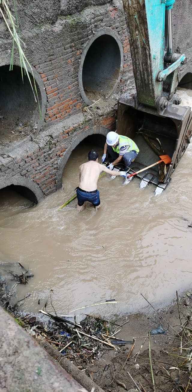17日15時,牛慶接收到黃石隧道進口水位上漲信息,由于降水量大與山體積水,上游水位半小時間上漲兩米。當即,梁鵬與牛慶前往現場查看,判斷下游橋梁涵洞排水量不足,將可能出現洪澇。