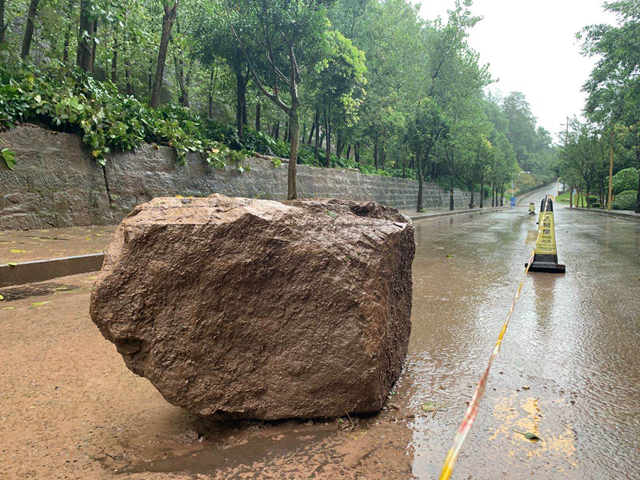 來自縣氣象局的信息顯示: 7月15日晚上8:00至7月18日下午6:00,我縣城區累積降雨量達183.7毫米 ,16、17日連續兩天達到暴雨級別。受此影響,我縣城區多條主次干道、多個公園和小游園受災,山體滑坡、塌方、落石以及樹木、路燈倒塌等災害事故共計21處,所幸未造成人員傷亡。災情發生后,縣城管部門聯合縣住建委、交巡警大隊等部門,分成多個小組分赴各受災點開展巡查和清障、排險。“排查當中能及時清障和排險的 ,及時組織人員和機具進行全面清障排危,現場沒有條件解決的 ,及時組織人員拉警戒線 ,設置警示標牌和隔離欄 ,最大限度保障道路交通安全和行人安全。”縣城管局副局長 羅倫介紹清障排險舉措。