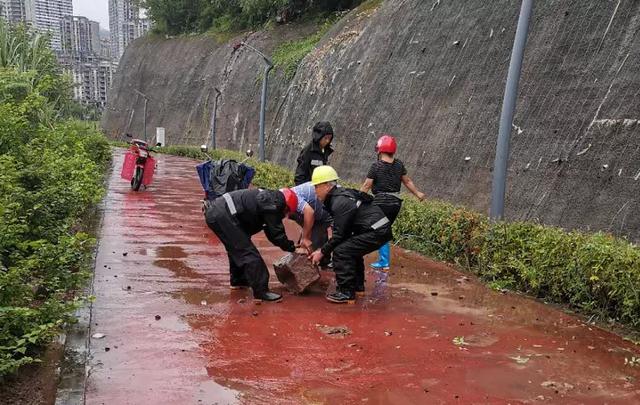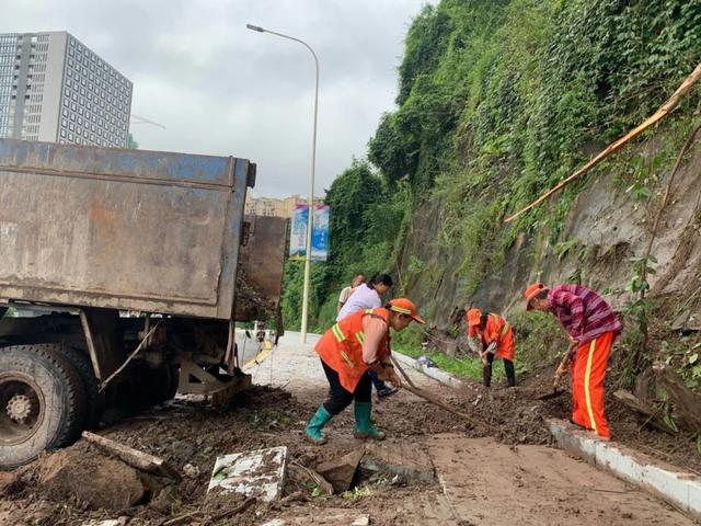 縣公園管理所緊急抽調工作人員趕往滑坡現場
