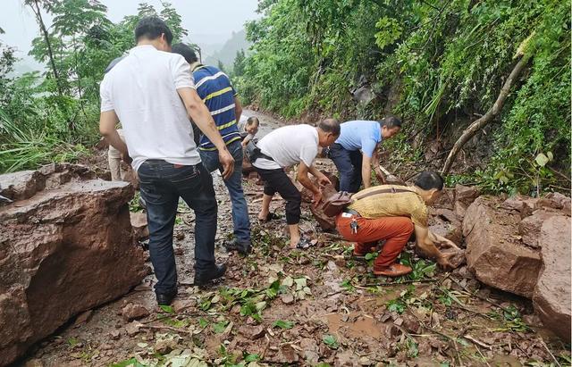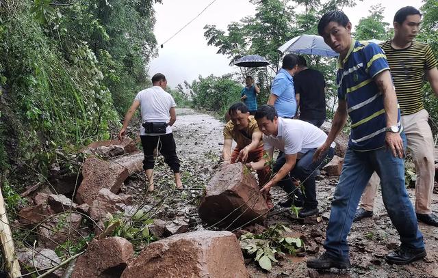 當地黨委政府相關負責人帶領應急辦進行道路排危