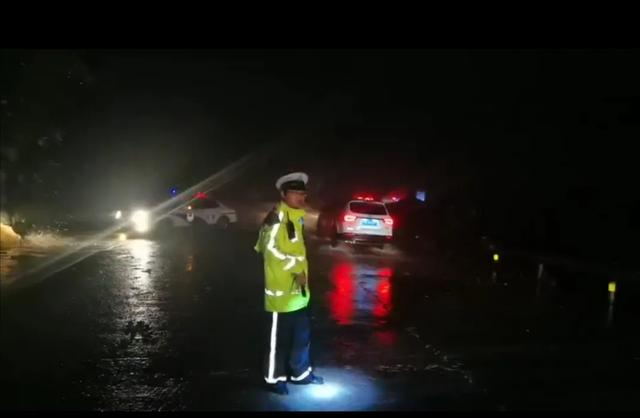 在暴雨中巡邏排險、疏導交通、清理路障