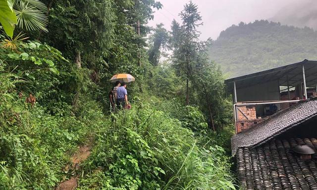 街道相關負責人員在進行走訪排查地災隱患