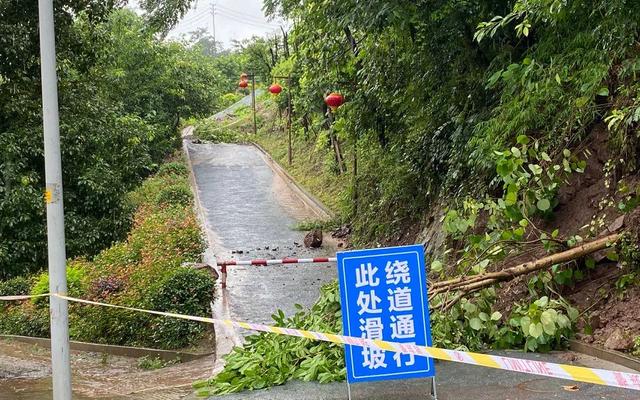 水口鎮一居民樓旁步道垮塌,排水受阻