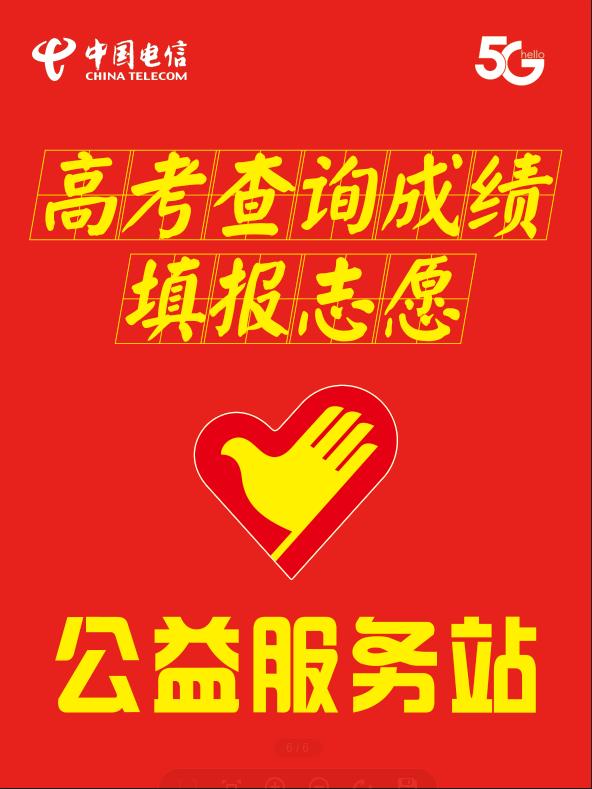 即日起,凡有“高考查詢成績、填報志愿公益服務站”標識的電信門店,均提供該項免費的公益服務。