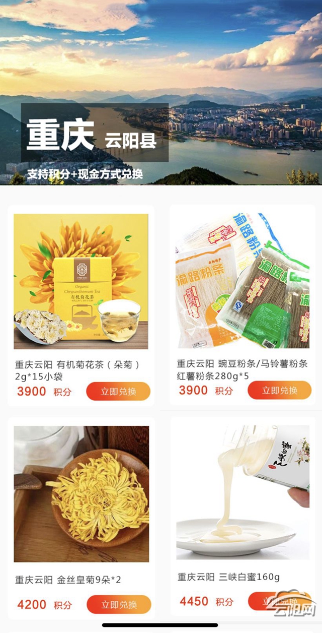 用手機打開兌換網頁,記者看到在積分換購區域展示了“天生云陽”系列產品,包括三峽陽菊·高山有機(朵菊)、三峽白蜜、羊肚菌、泥溪青杠黑木耳、渝路粉條等11款大家熟知的農特產品,且每種農特產品都有對應的積分標準。“現在大重慶范圍內的電信手機用戶都可以通過手機積分兌換天生云陽系列產品,所有兌換成功的產品均享受包郵。即使積分不夠,也可以在兌換頁面用微信支付相應的差價,按照1元兌換100積分來計算。”中國電信云陽分公司的工作人員向記者舉了一個例子:假如一件產品需要3900分積分兌換,而用戶只有2000積分,那差的1900積分只需支付19元即可。這樣一來,電信客戶不僅可以不花錢或少花錢就買到天生云陽的純天然農副產品,還可以“舉手之勞”為扶貧出力,一舉多得!