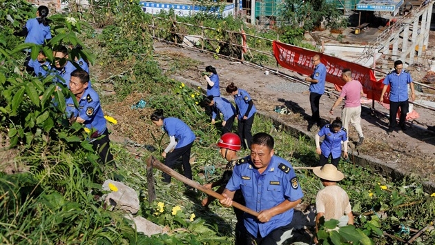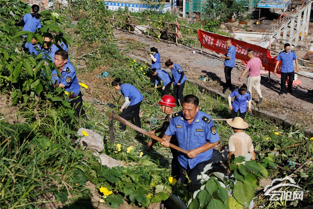 云陽網(wǎng)訊(記者 王彬彬 洪琳)8月4日,在迎賓大道云商大廈附近的“菜園地”,記者看到居民自建的菜地有的用磚塊砌成,有的用泡沫箱圍擋放泥土搭建,還搭起了架子、保溫棚等讓瓜果生長(zhǎng),菜園里蚊蟲滿天飛,污水橫流,整個(gè)環(huán)境呈現(xiàn)著臟、亂、差。鏟除現(xiàn)場(chǎng),執(zhí)法人員冒著炎熱,手持鋤頭等工具,對(duì)菜園地進(jìn)行清理,一片忙碌景象。