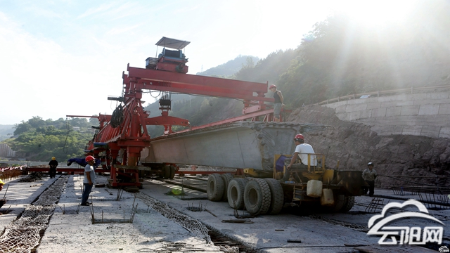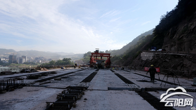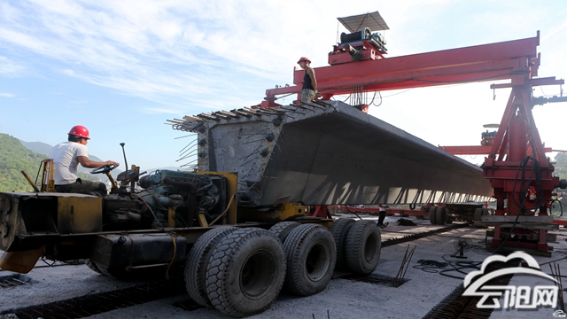 云陽網(wǎng)訊(記者 李充 實習生 李歆宇)8月9日,長河一號大橋施工現(xiàn)場,工人師傅正在緊張作業(yè),運梁設(shè)備車正在將預梁板這個龐然大物小心翼翼送進卡口中,整個工地一片熱火朝天建設(shè)景象。