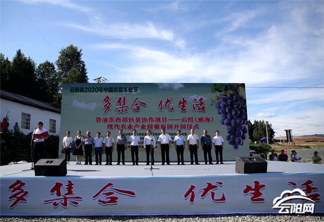 云陽網訊(記者 趙曉龍 朱學徽)“我宣布,云陽·威海多集合現代農業菜籃子小程序上線、多集合園葡萄園開園、云陽縣2020年中國農民豐收節正式開幕!”8月15日,云陽縣2020年中國農民豐收節暨魯渝東西部扶貧協作項目——云陽·威海多集合現代農業產業園葡萄園開園儀式在鳳鳴鎮馬軒村舉行,副縣長劉桂虎宣布開園,縣政府黨組成員劉正杰參加活動。