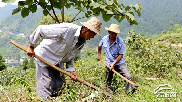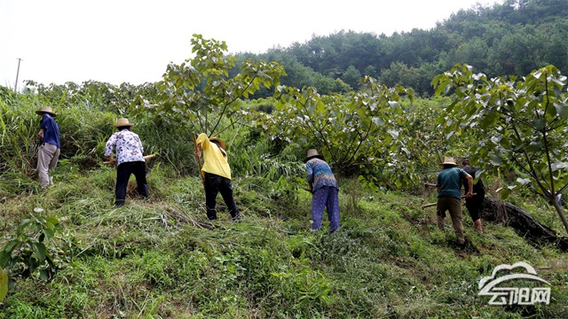 在人和街道千峰村油桐種子園暨油桐林木種質資源庫,100余畝的油桐樹遍布在山坡上,樹枝上掛滿累累碩果,工人們也正忙著為油桐樹進行除草管護。