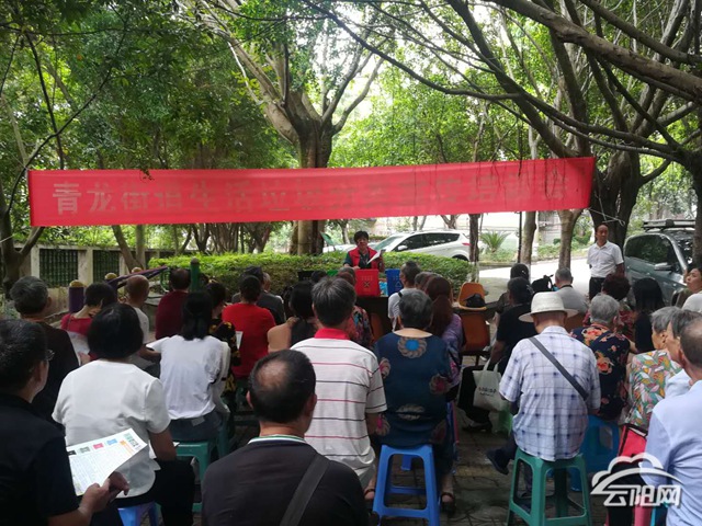 8月20日,青龍街道青龍嘴社區在工商銀行小區舉行垃圾分類知識宣傳活動,面對面向市民宣傳為什么進行垃圾分類、怎樣進行垃圾分類,引導大家積極參與到垃圾分類中來,共同創造美好生活環境。(付官碧 攝)