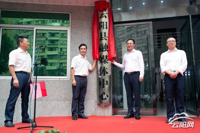 縣委常委、宣傳部部長王啟海和縣融媒體中心主任胡乾毅為云陽縣融媒體中心揭牌。
