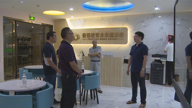 當天,執法人員來到奮強教育未來魔法校區、百年教育金科分校和啟航教育金科校區等地,逐項檢查校外培訓機構在消防安全、治安防控、無證辦學、超范圍經營等工作開展情況。執法部門根據各自職責對存在問題的校外培訓機構分別下達整改意見書,責令相關負責人限時整改落實。