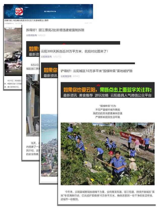 今年以來,縣融媒體中心在各平臺刊播城市提升行動新聞327條次,涉及殘疾人關愛行動、城市拆違治亂,鏟菜植綠,糾正亂停亂放,不文明行為曝光等內容。