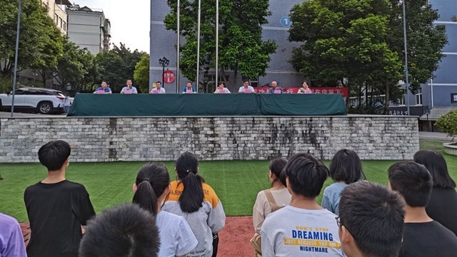 云陽網訊(通訊員 張小林)五分鐘能做什么,五分鐘能講些什么?9月3日上午,云陽職教中心對2020級新生進行入學教育,上好“開學第一課”。操場上,1200余名學生正襟危坐,洗耳恭聽,教務處、學生處、生習處、體藝處等7名處室負責人分別用五分鐘時間對學生進行學習適應性和生活適應性、校規校紀、專業思想、安全穩定、疫情防控、身心健康教育。