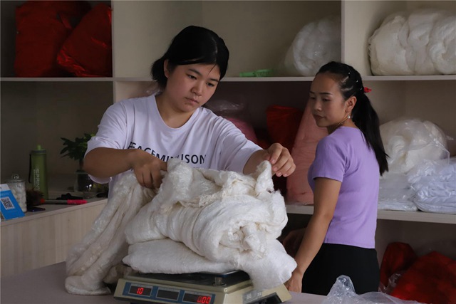 “一床特級蠶絲被大約1至3公斤,售價為880元至2080元不等。”雙壩村蠶桑專業合作社負責人張紅斌說,桑蠶絲被譽為“纖維皇后”,隨著人們生活水平的不斷提高,蓬松輕柔的手工蠶絲被也走入尋常百姓家。