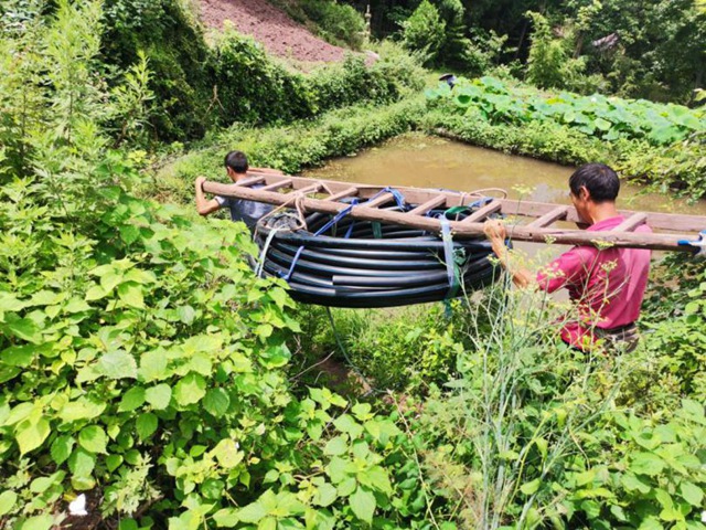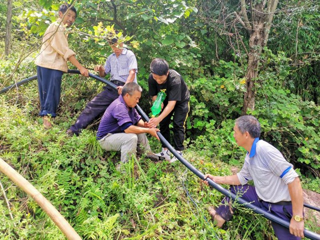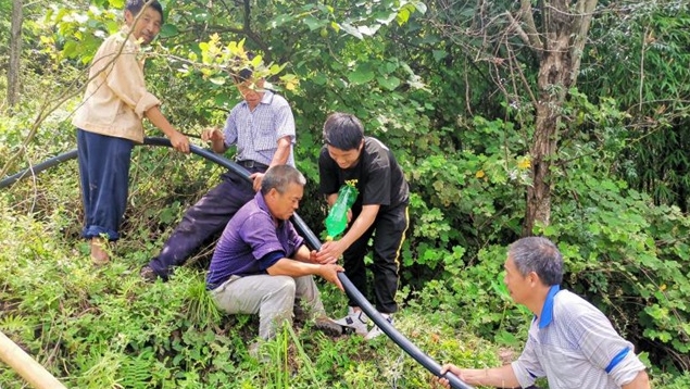 去年,黃土村駐村工作隊在走訪中發現這一問題后,向縣水利局爭取到飲水凈化過濾工程項目,在該村1組走山槽安裝水質進化器,架設PE50管道3000米,從立于半山腰的新建渠堰引水,實現了全村600余名群眾從“有水喝”到“喝放心水”的轉變。