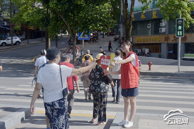 活動中,10余名黨員老師以身作則,來到云陽縣清風廣場等地開展文明交通勸導志愿服務活動。志愿者每四人一組,身穿統一黨員志愿者馬甲、手持交通引導小紅旗、文明出行點贊牌等,在斑馬線開展現場勸導服務活動,提醒過往行人注意交通信號燈。對闖紅燈、不走斑馬線、翻越隔離欄等不文明交通行為進行提醒和勸阻,對老弱病殘孕等特殊人群過馬路提供幫助,對過往行人進行交通安全知識宣傳。