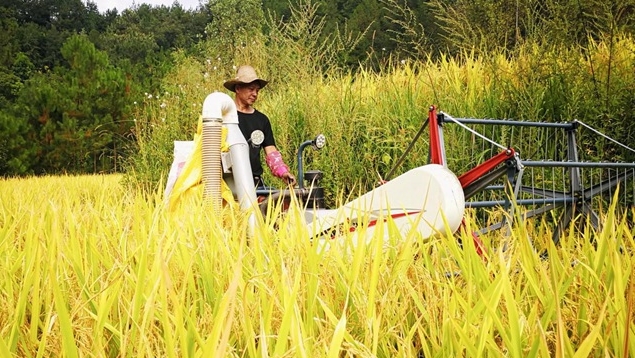 山腰上,到處都是忙碌的收割身影,耳邊頻頻響起的“轟隆隆”聲,正訴說著今年豐收的喜悅。