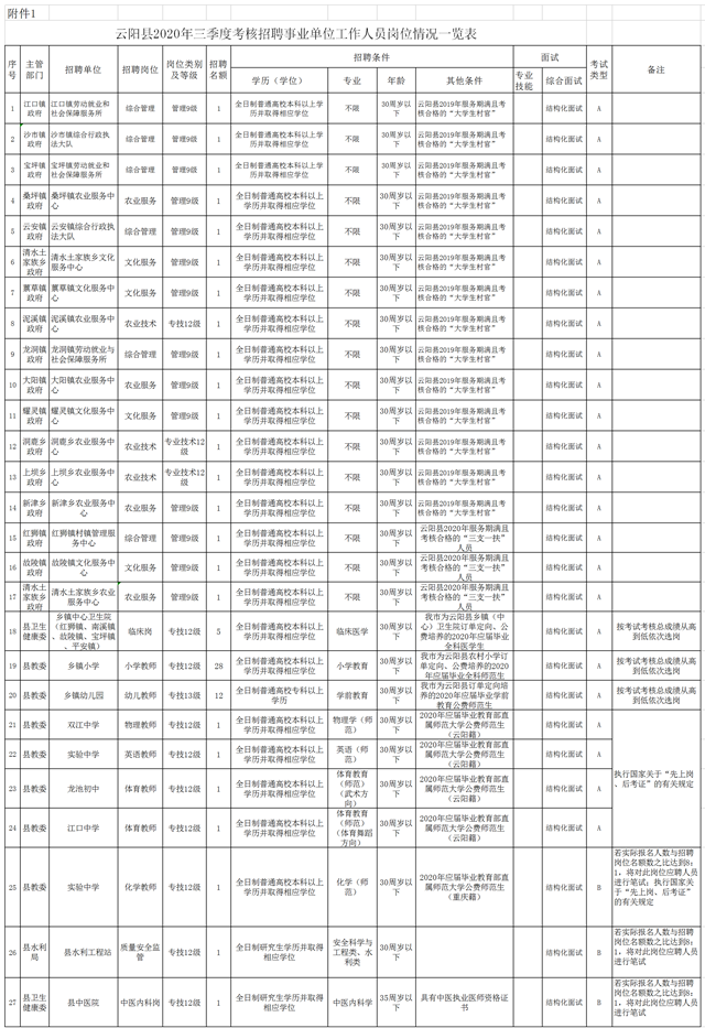 各崗位具體單位將于2020年9月30日前在云陽縣人民政府公眾信息網站上公布,同時公布選崗時間及地點等事項。逾期未到者,不再進入本次招聘后續環節。
