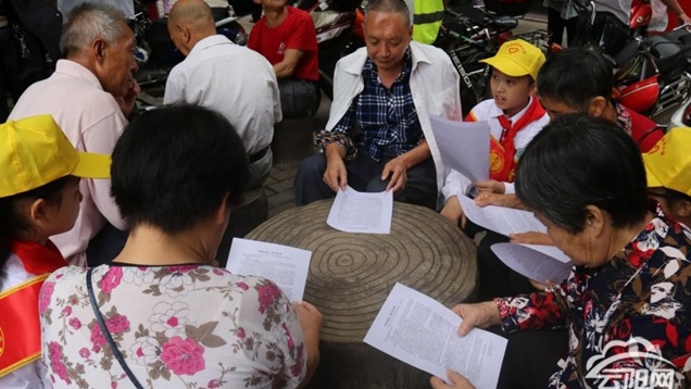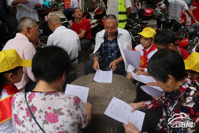 云陽(yáng)網(wǎng)訊(通訊員 朱偉)“我們倡議,以‘光盤(pán)’為榮,以‘剩宴’為恥......”9月18日,水市小學(xué)組織師生到南溪水市社區(qū)開(kāi)展“光盤(pán)行動(dòng)我先行暨推廣普通話進(jìn)社區(qū)”宣傳活動(dòng)。