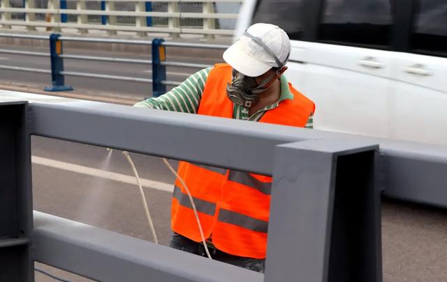 他們有的忙著橋欄的裝飾、有的忙著給橋上的護欄噴漆,整個現場呈現出一派熱火朝天的景象。