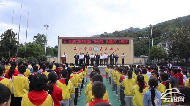 云陽網(wǎng)訊(通訊員 萬柯言)9月23日,桐林小學(xué)校園里洋溢著暖暖的愛意,重慶市溫州平陽商會正在這里舉行捐贈儀式。重慶市委臺辦,泥溪鎮(zhèn)政府,桐林小學(xué)全體師生員工參加了儀式。