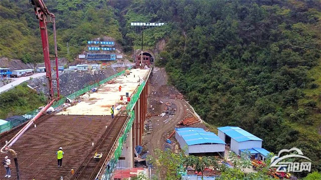 當(dāng)天,隨著紅梁灣大橋最后一跨澆筑順利銜接隧道口,標(biāo)志著棲霞方向高鐵交通咽喉順利打通,這也是鄭萬高鐵7標(biāo)段完成的第二座大橋。
