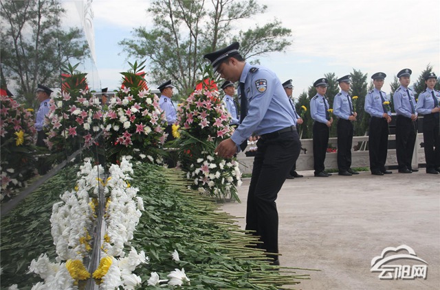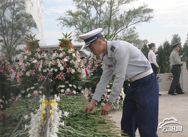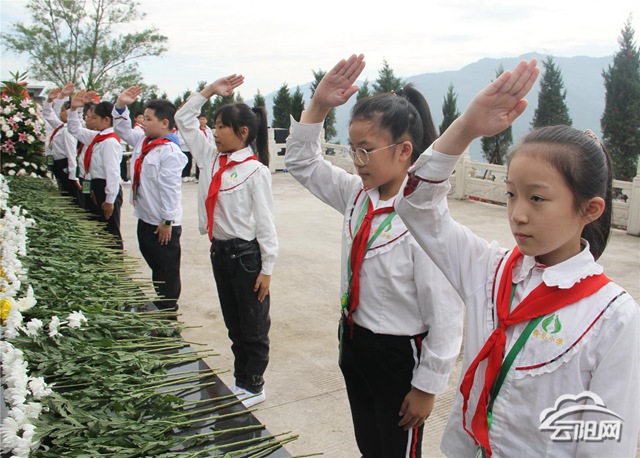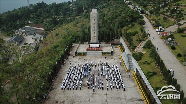 烈士陵園內,松柏長青,氣氛肅穆。革命烈士紀念碑巍然聳立,正中央“人民英雄永垂不朽”八個大字,熠熠生輝。紀念碑前,600多名社會各界代表手持鮮花,列隊肅立。隊列之前,以中共云陽縣委、縣人大常委會、縣人民政府、縣政協,駐云各部隊,各民主黨派、工商聯和無黨派人士,各人民團體和各界群眾,軍烈屬和老戰士,全縣少先隊員名義敬獻的9個大型花籃一字排開,寄托著社會各界對英烈的深切緬懷。