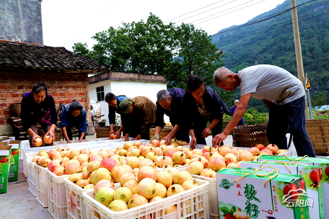 云陽網(wǎng)訊(記者 朱學(xué)徽 實習(xí)生 李歆宇)9月28日,雙土鎮(zhèn)雙土社區(qū)產(chǎn)業(yè)園里,一個個碩大鮮紅的石榴掛滿枝頭,連空氣中都彌漫著絲絲清香,正忙著采摘的村民笑逐顏開,豐收的喜悅洋溢在每個人臉上。