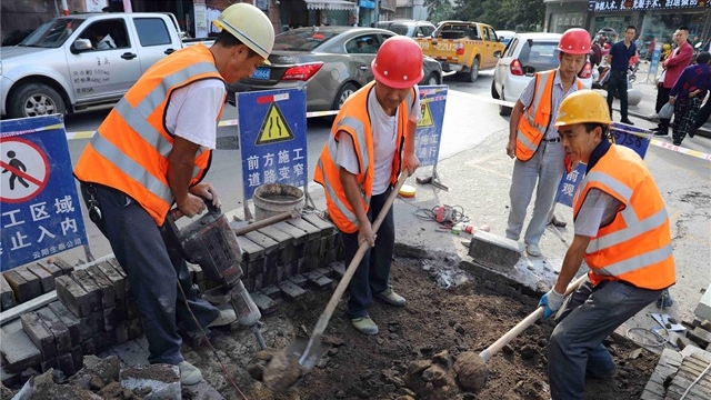 近日,施工人員正在對群益路一處人行道進行緣石坡道改建,對原本與地面有10厘米高度差的人行道口進行拆建,改造成平緩的坡面,方便乘輪椅者進入人行道行駛。