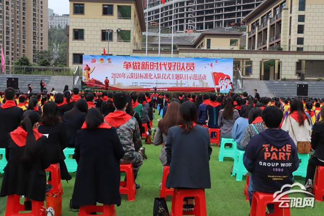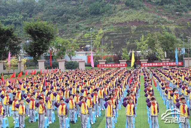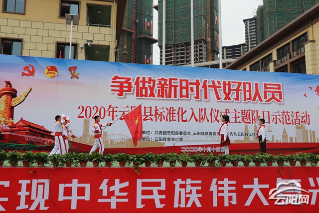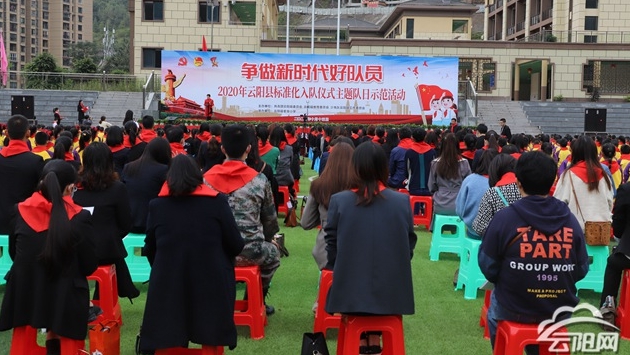 升國旗、唱國歌、出隊旗……上午9時許,在雄壯有力的國歌聲中,云陽縣2020年標準化入隊儀式主題隊日示范活動正式拉開帷幕。“我們的隊旗高高飄揚,星星火炬閃耀著金光”“我們的隊歌鏗鏘而嘹亮,召喚者伙伴響徹四方”……儀式中,宣布新隊員名單、為新隊員授紅領巾、新隊員宣誓、老隊員重溫誓詞、為新建中隊授中隊旗、為新建中隊聘請中隊輔導員等程序依次進行。最后,在大隊輔導員的帶領下,全體隊員呼號,入隊儀式在“時刻準備著”的呼號聲中圓滿結(jié)束,整場活動隆重、莊嚴、熱烈。