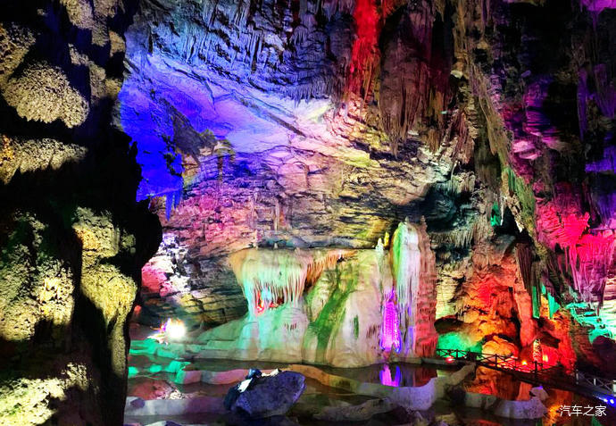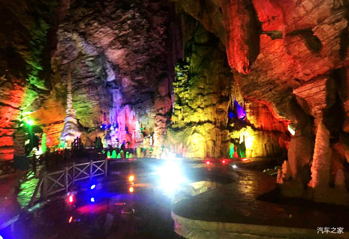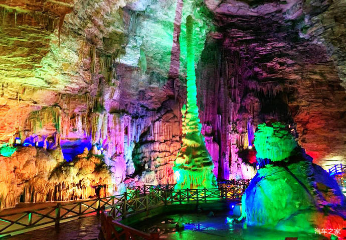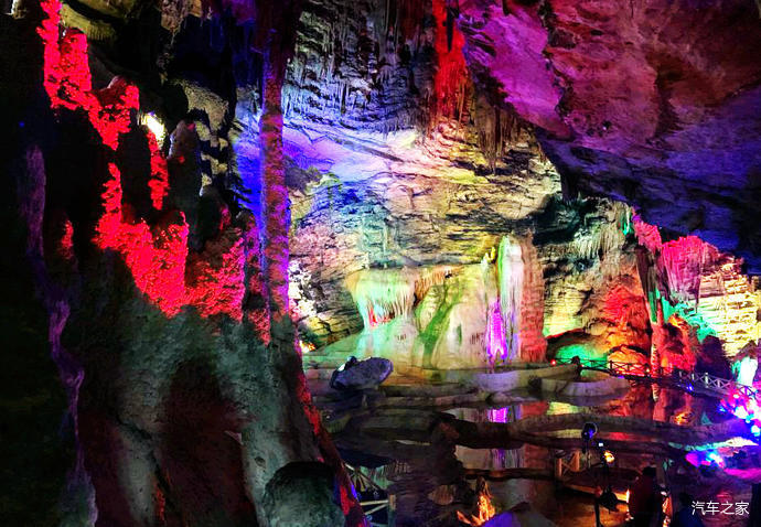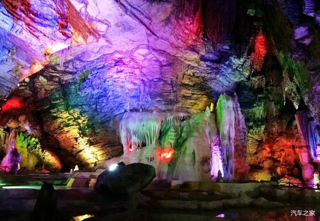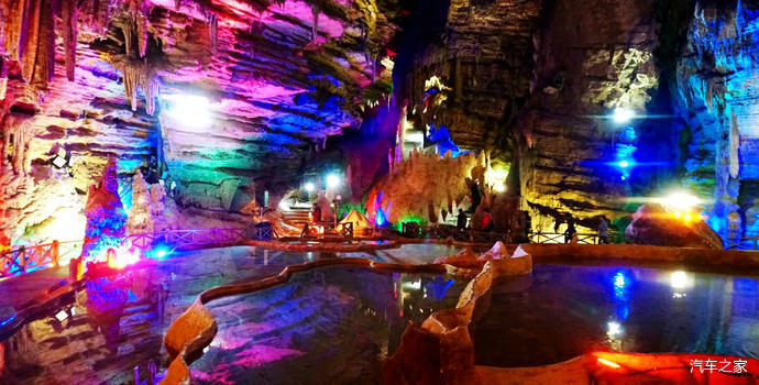 龍洞由前后兩廳組成,前廳成圓形,寬40余米,高近50米,長120米,面積4800平方米,內(nèi)遍布千姿百態(tài)的鐘乳石,神奇瑰麗,琳瑯滿目。有“白玉龍床”、“龍傘”、“龍壺”、“龍椅”、“龍凳”、“蓮臺”、“天雞報曉”等自然景觀。后廳呈五邊形,高30米,長300余米,面積6000平方米。里面的石鐘乳