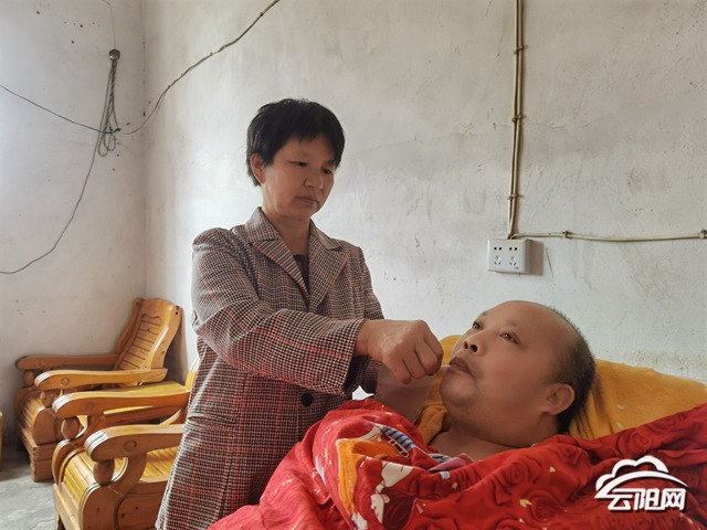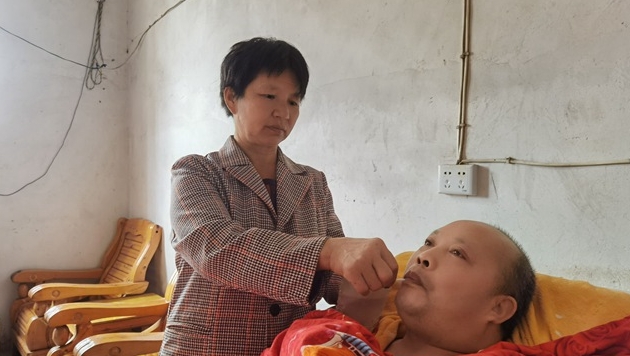 “最初那幾年,我經(jīng)常整夜睡不著。”謝清梅說。為了讓丈夫臥在床上少受罪,每隔兩小時她就給丈夫翻次身,每天都要給丈夫擦洗兩次身子,及時更換被弄臟的衣服……日復(fù)一日,年復(fù)一年,這一照料就是七年多。在這七年多時間里,謝清梅沒有一天晚上睡過完整的覺,沒有在外住宿過一晚,沒有離開丈夫彭義安視線超過兩小時,就算在地里干農(nóng)活,兩小時內(nèi)她也要回家給丈夫抬抬腳、按摩、喂水......