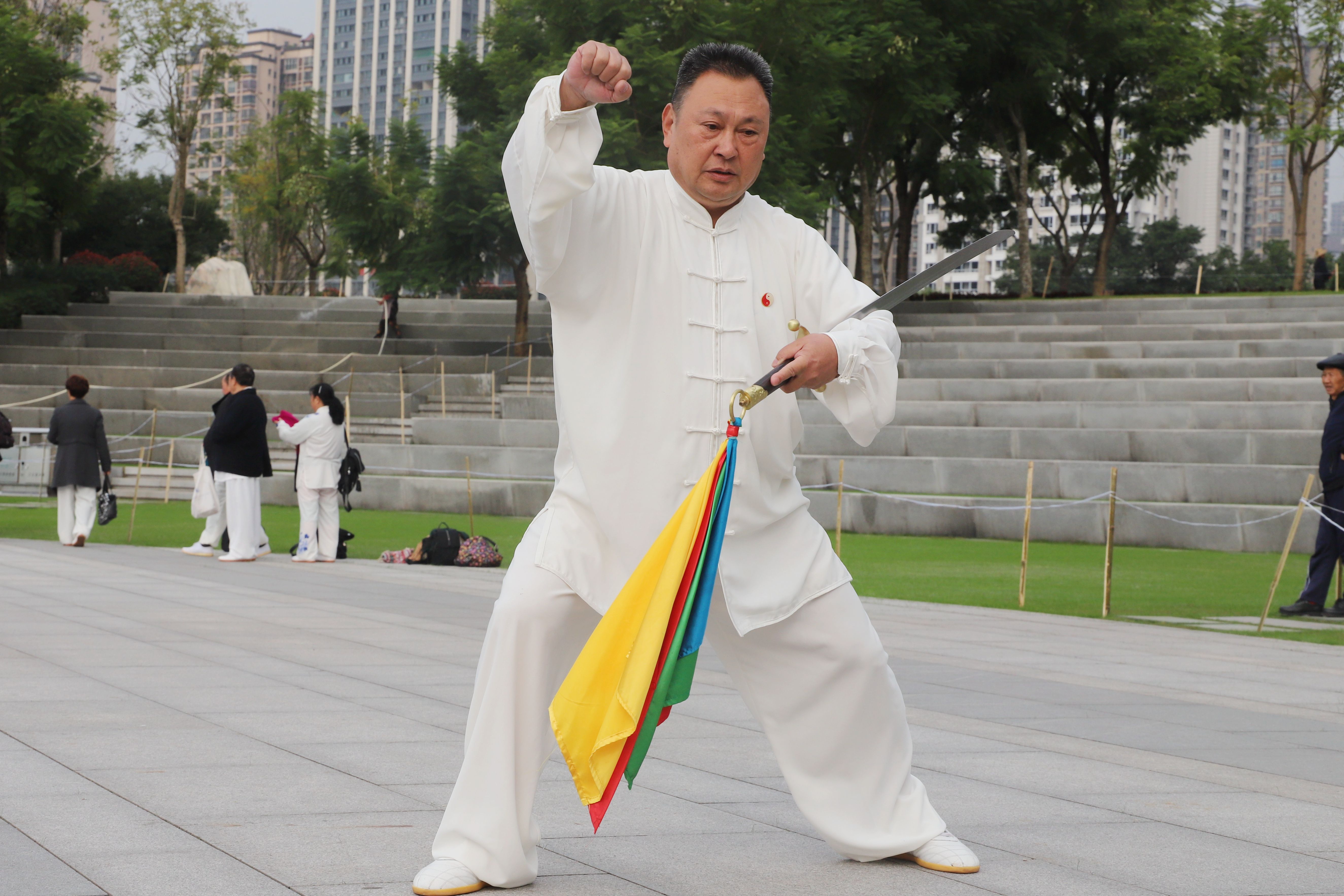 開步起勢、白鶴亮翅、左右攬雀尾......活動從太極拳愛好者表演的24式簡化太極拳開始。蓮花扇、功夫扇表演將武舞融合,扇面時開時合,剛?cè)岵?jì);太極拂塵、楊氏太極刀、太極雙環(huán)、太極劍等表演將傳統(tǒng)太極拳與器械相結(jié)合,舒展大氣,瀟灑飄逸;雙人柔力球、集體柔力球表演以迎、納、引、拋為動作要領(lǐng),整個運(yùn)動過程隊列整齊,動作協(xié)調(diào)流暢,如行云流水。