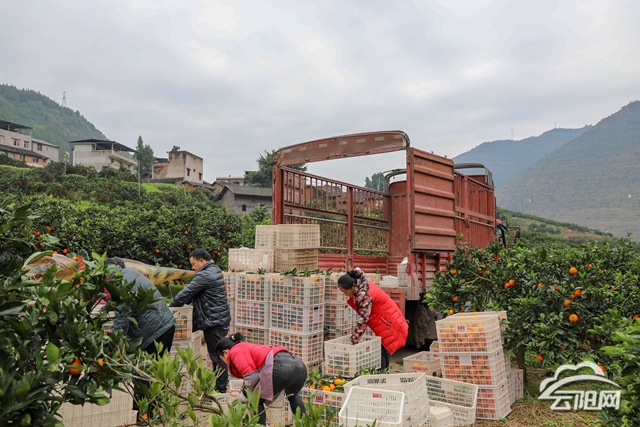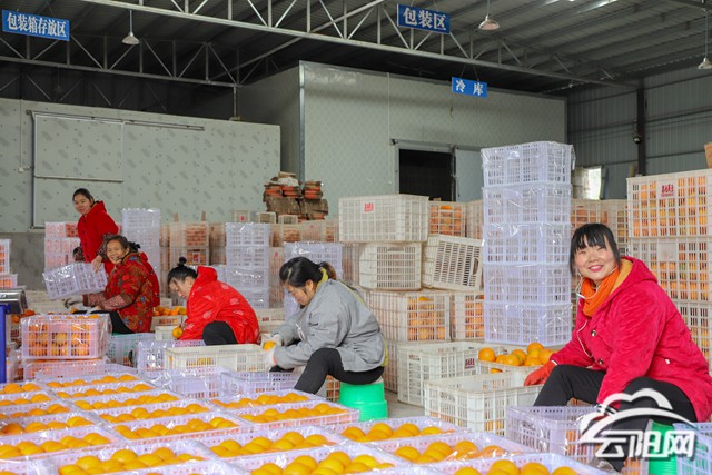 在普安鄉回龍村柑橘現代產業示范園——鑫池農業2000平方米的臍橙加工廠內,臍橙清洗分級機正在清洗分揀新鮮的臍橙,工人們把臍橙分類打包、封箱,準備發往印尼、馬來西亞等地。