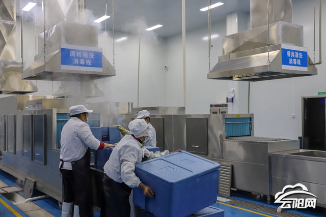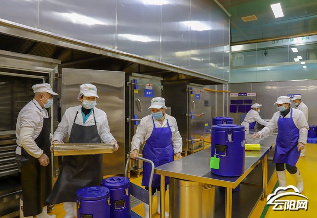 “‘中央廚房’的流程是從農(nóng)民手中把食材采購回來,經(jīng)檢驗(yàn)檢測合格后,再通過毛菜處理、切配處理、熱廚加工,經(jīng)配餐、裝箱、打包,通過保溫箱保溫車,再集中供出去。” 云陽民康餐飲服務(wù)有限公司相關(guān)負(fù)責(zé)人說。