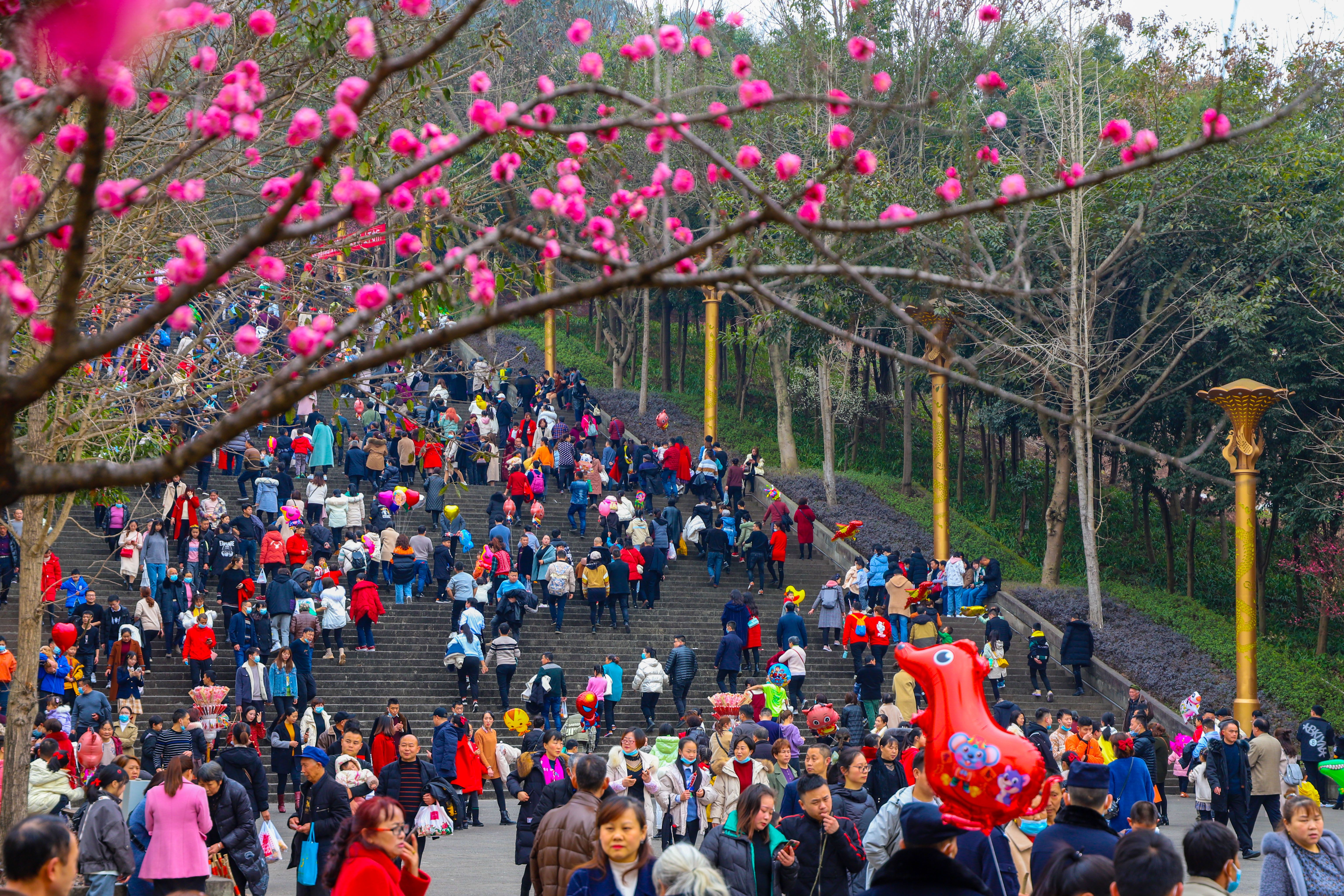 云陽網(wǎng)訊(記者 陳小婭 譚啟云)“春臨大地百花艷,節(jié)至人間萬象新。”新春佳節(jié)期間,環(huán)湖綠道、梯城八景等公園和景點中,春日紅梅繡出了這座公園城市的美好畫卷,人們打卡游玩賞春光,好不愜意。